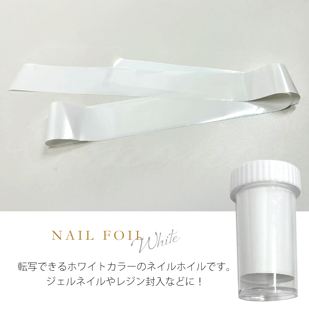 転写できるホワイトカラーのネイルホイルです。 ジェルネイルやレジン封入などに!