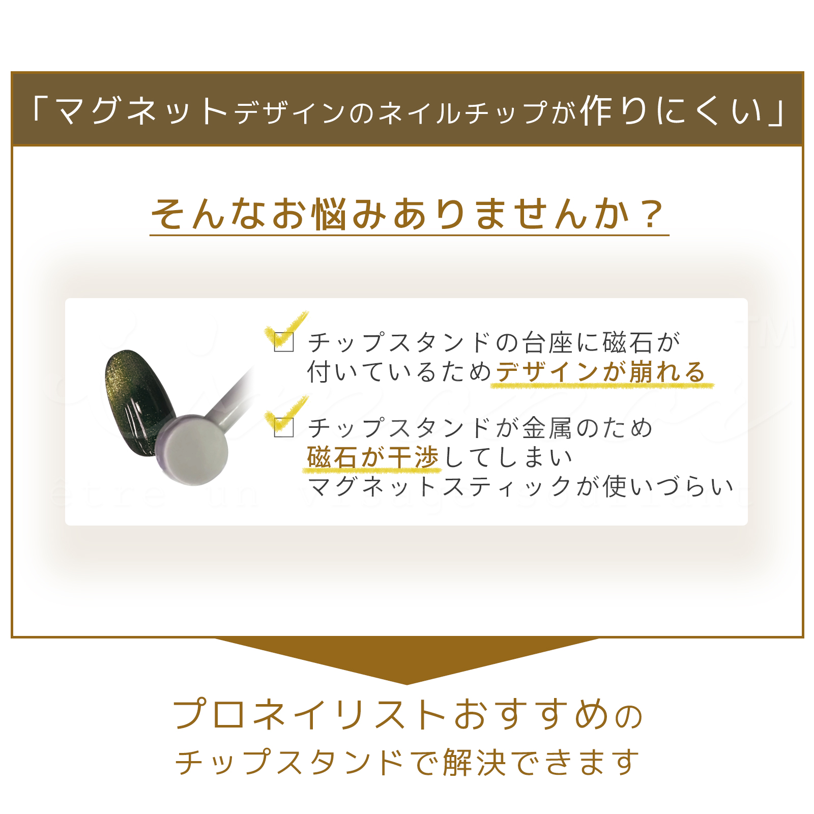 マグネットネイルジェルのアートを行う際、影響を受けない磁石を使用しないチップスタンドです。