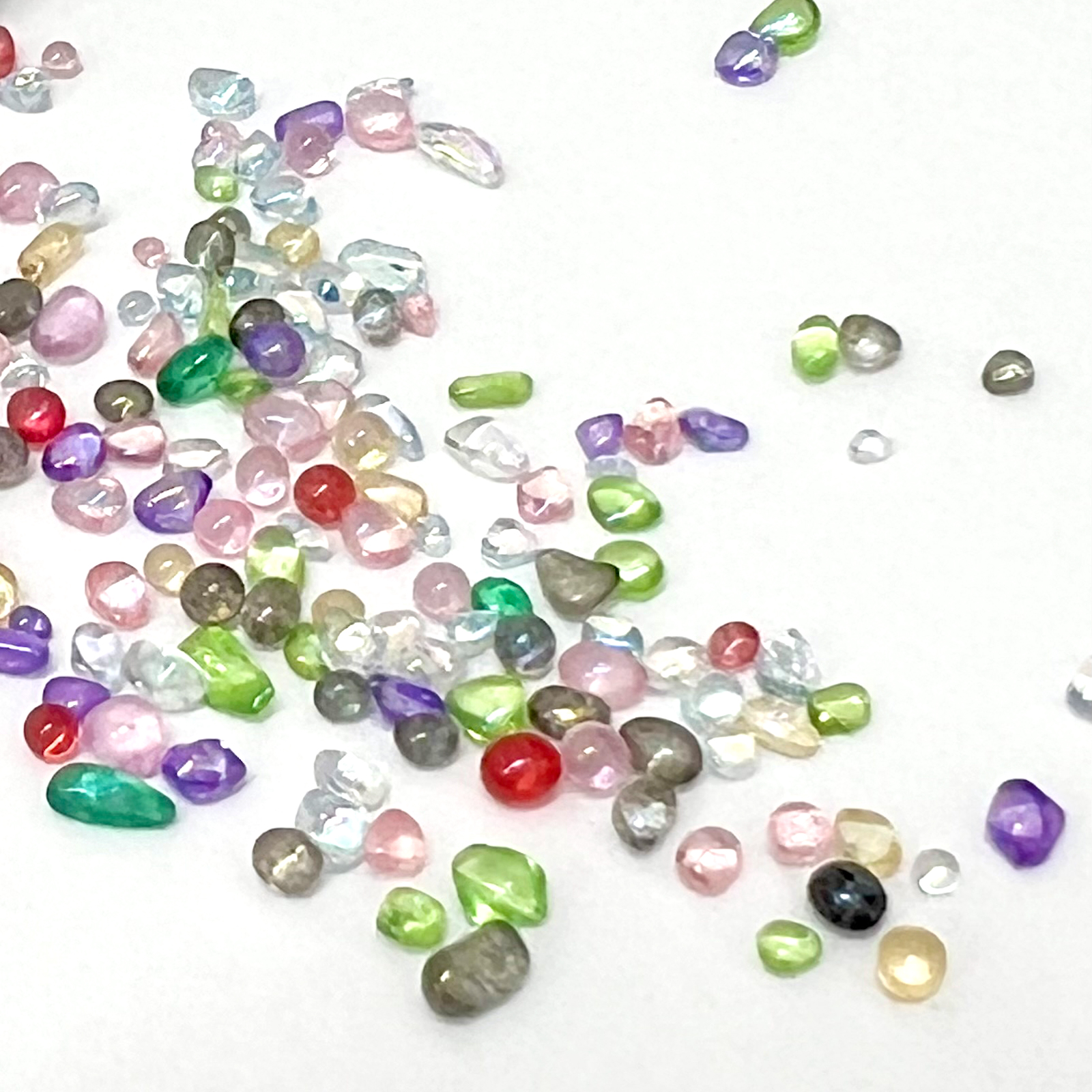 ランダムなサイズと形状のガラスビーズです。内容物の色数や割合もランダムです。粒径は約1mm~5mm。
