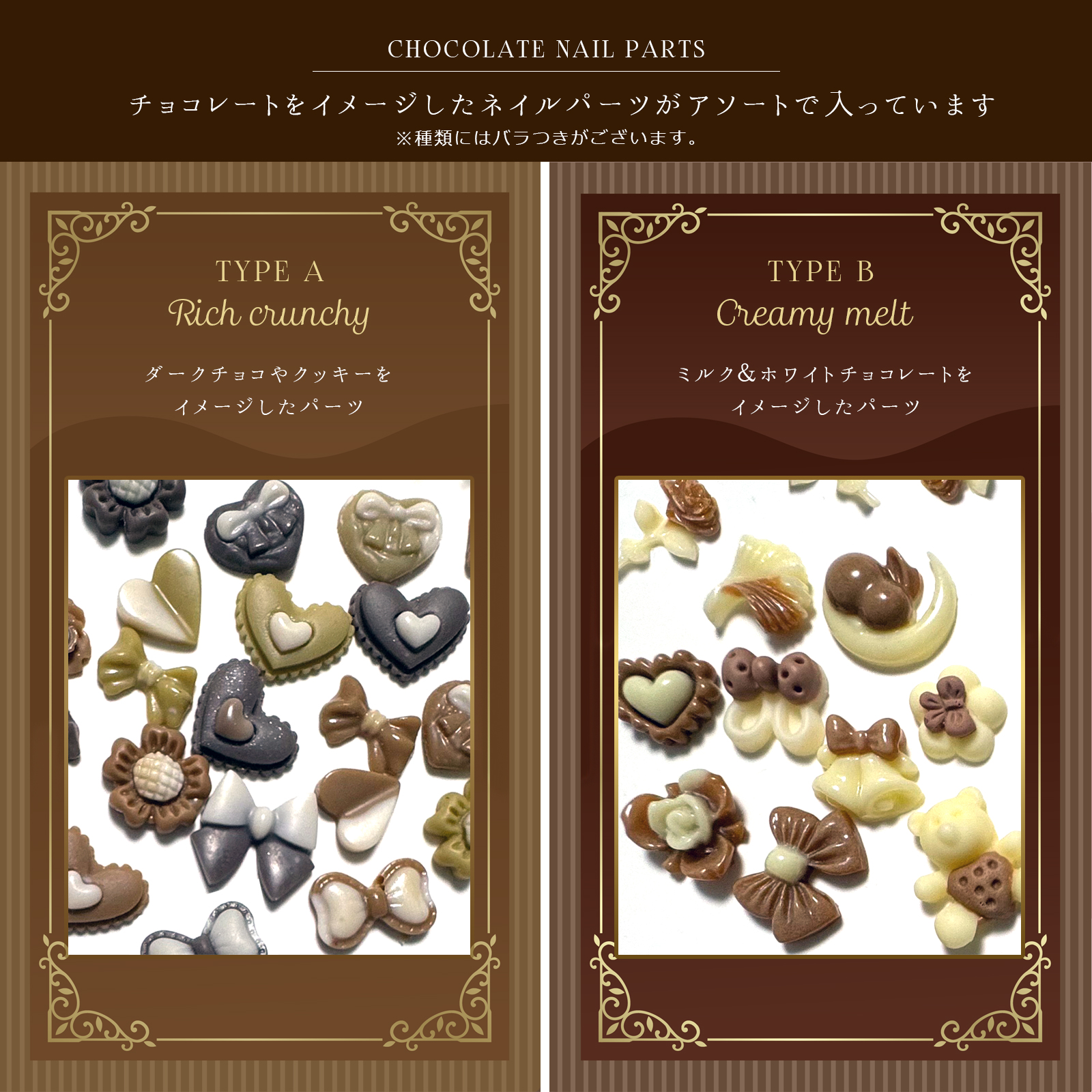 バレンタインにおすすめのチョコレートのようなネイルパーツ 全2種