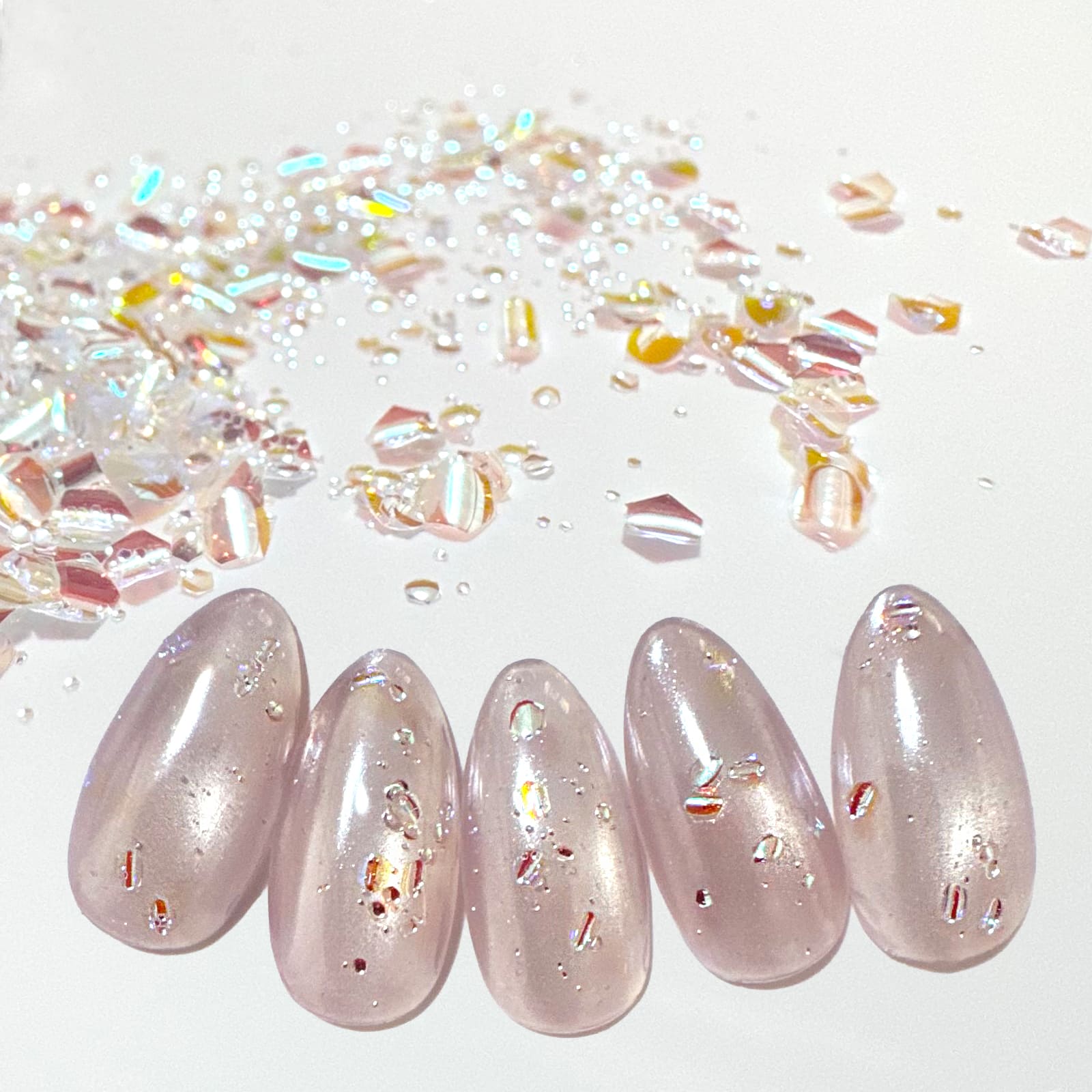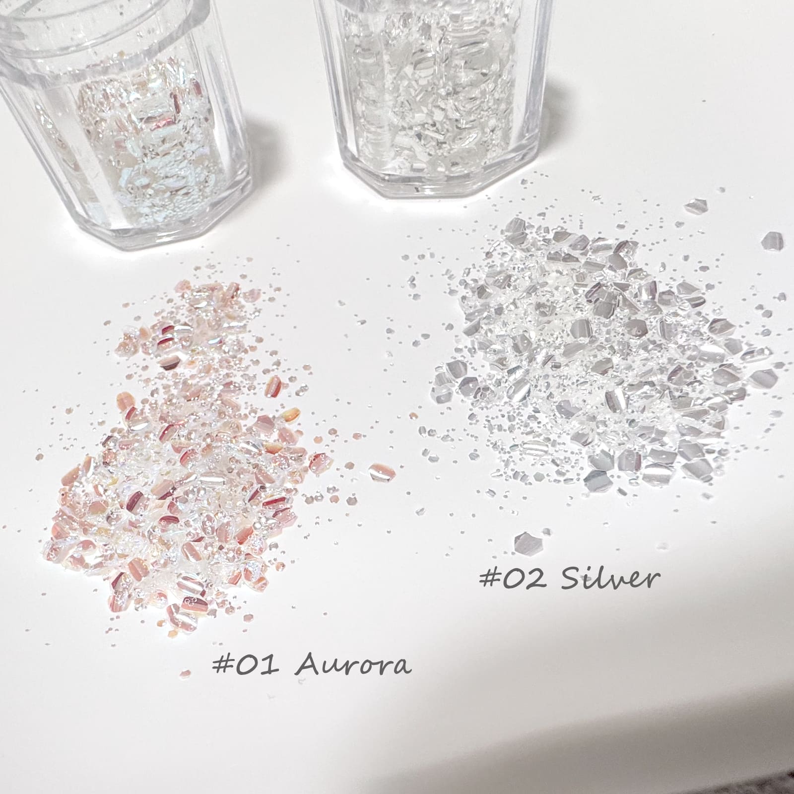 光を受けて繊細にきらめく星屑のようなフレーク 全2種。