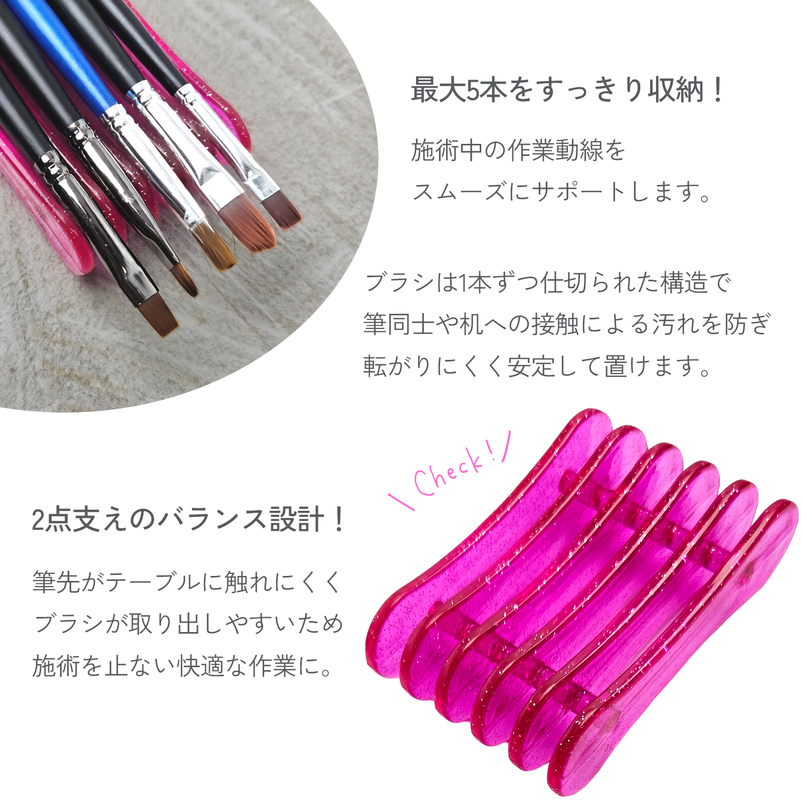 【格安】施術効率アップ【OUTLET】ブラシホルダー クリアラメピンク (傷、擦れ) 5本収納 ネイル ジェルネイル